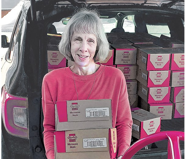 Vilas Food Pantry Food Manager Janlee Goska accepts the 1,000 meals provided by the FORK Endowment Fund to go to hungry families in Vilas County. —Contributed Photo