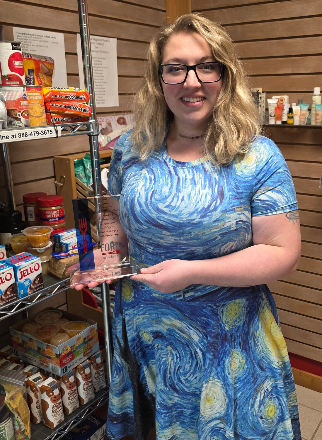 Danielle Larson, executive director for the Northwoods Children’s Museum, displays the coveted 2025 FORK Crimson Award. —Contributed Photo